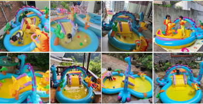 위 추천해드린 풀장 두개 다 저희 집에서 사용하는거였는데요. 공룡이 있는 유아 풀장은 놀이가 정말 정말 많습니다.