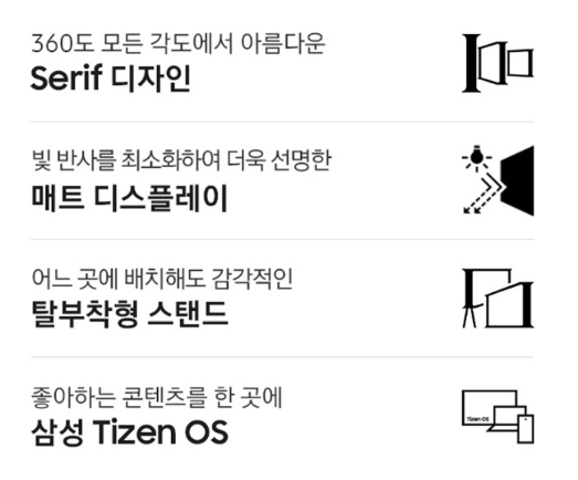 | 디자인/인테리어 | Samsung The Serif 49″ 4K | 공간 분위기 향상 및 기능도 충실 |
