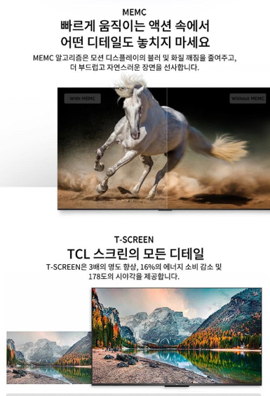 | 입문용/가성비 | TCL 43″ 4K UHD 스마트TV | 부담 없는 가격에 스마트 기능 탑재 |