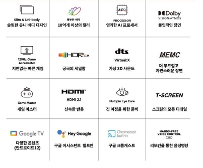 스마트 경험: Google TV 탑재로 넷플릭스·유튜브 등 주요 앱을 바로 시청 가능